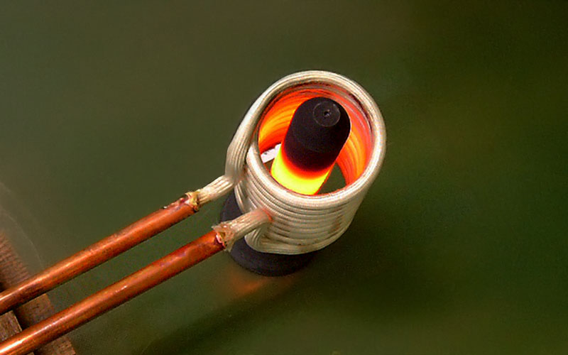 写真例:カーボン製部品を誘導加熱している様子